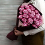 На фото букет из 23 фиолетовых роз. В составе: роза 23 шт, дизайнерская упаковка 1 шт, атласная лента 1 шт, . Все цветы свежие и ароматные, букет красиво оформлен и отлично подходит для подарка. Доступна доставка цветов или самовывоз.