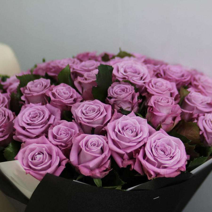 На фото букет из 51 фиолетовой розы. В составе: роза 51 шт, дизайнерская упаковка 1 шт, атласная лента 1 шт, . Все цветы свежие и ароматные, букет красиво оформлен и отлично подходит для подарка. Доступна доставка цветов или самовывоз.